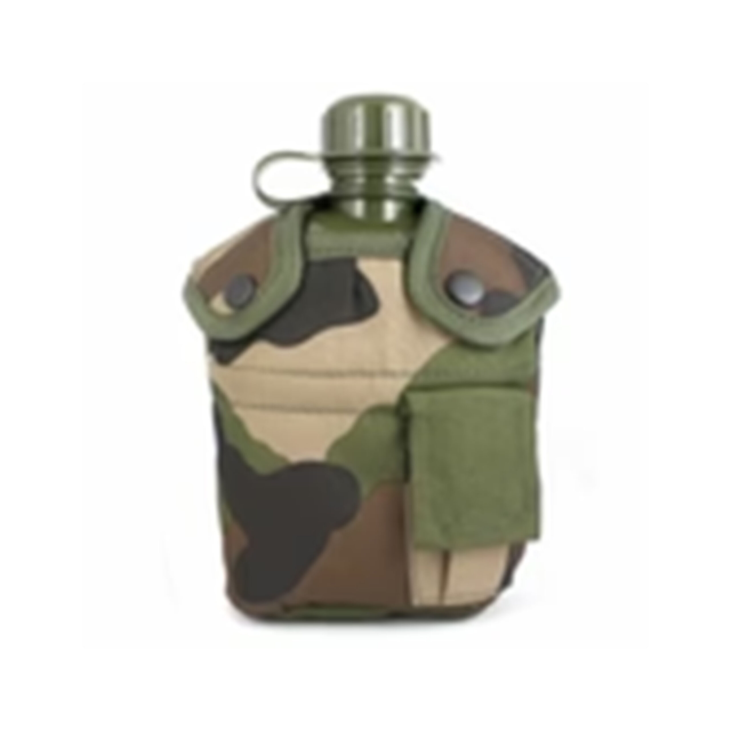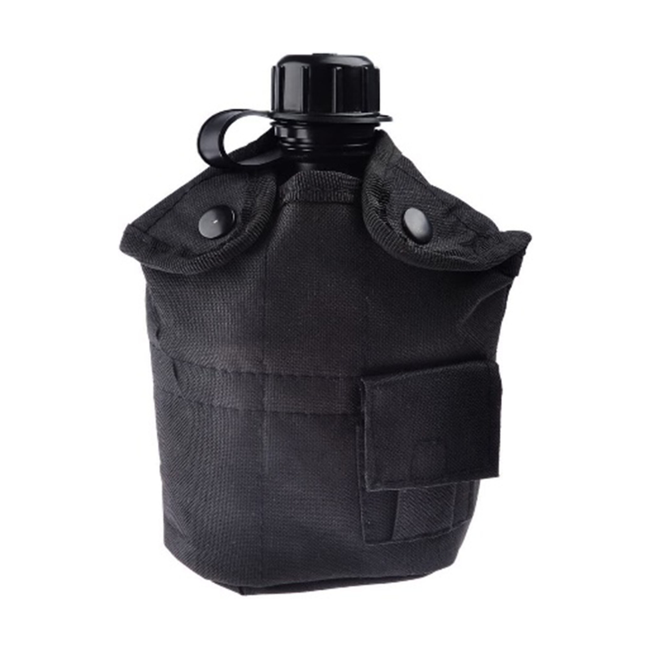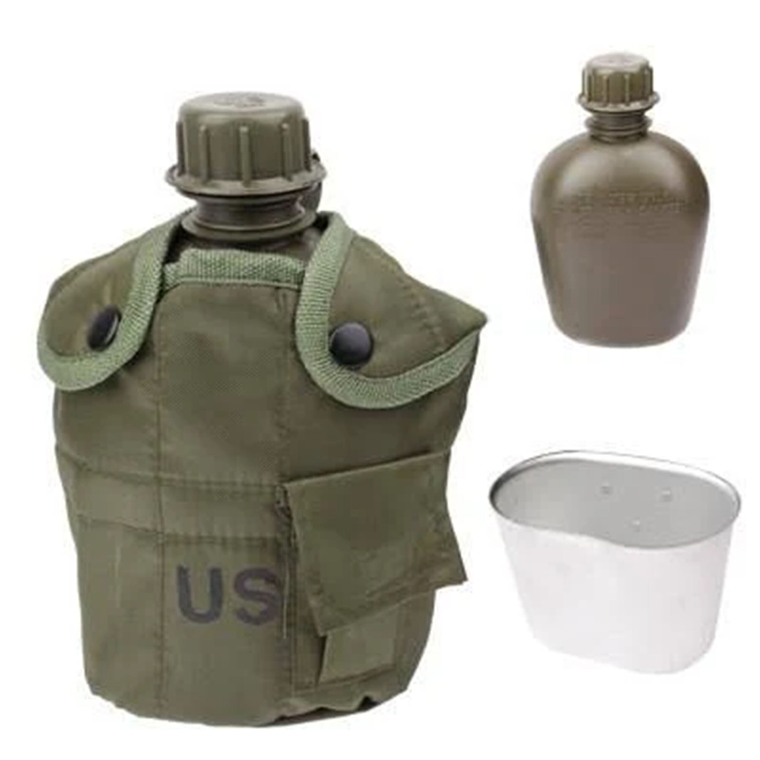 3-in-1 military water bottle Bottle Capacity: 1L Made of heavy-duty plastic (polyester) materials Comes with an aluminium canteen and a highly dense nylon carrying pouch.