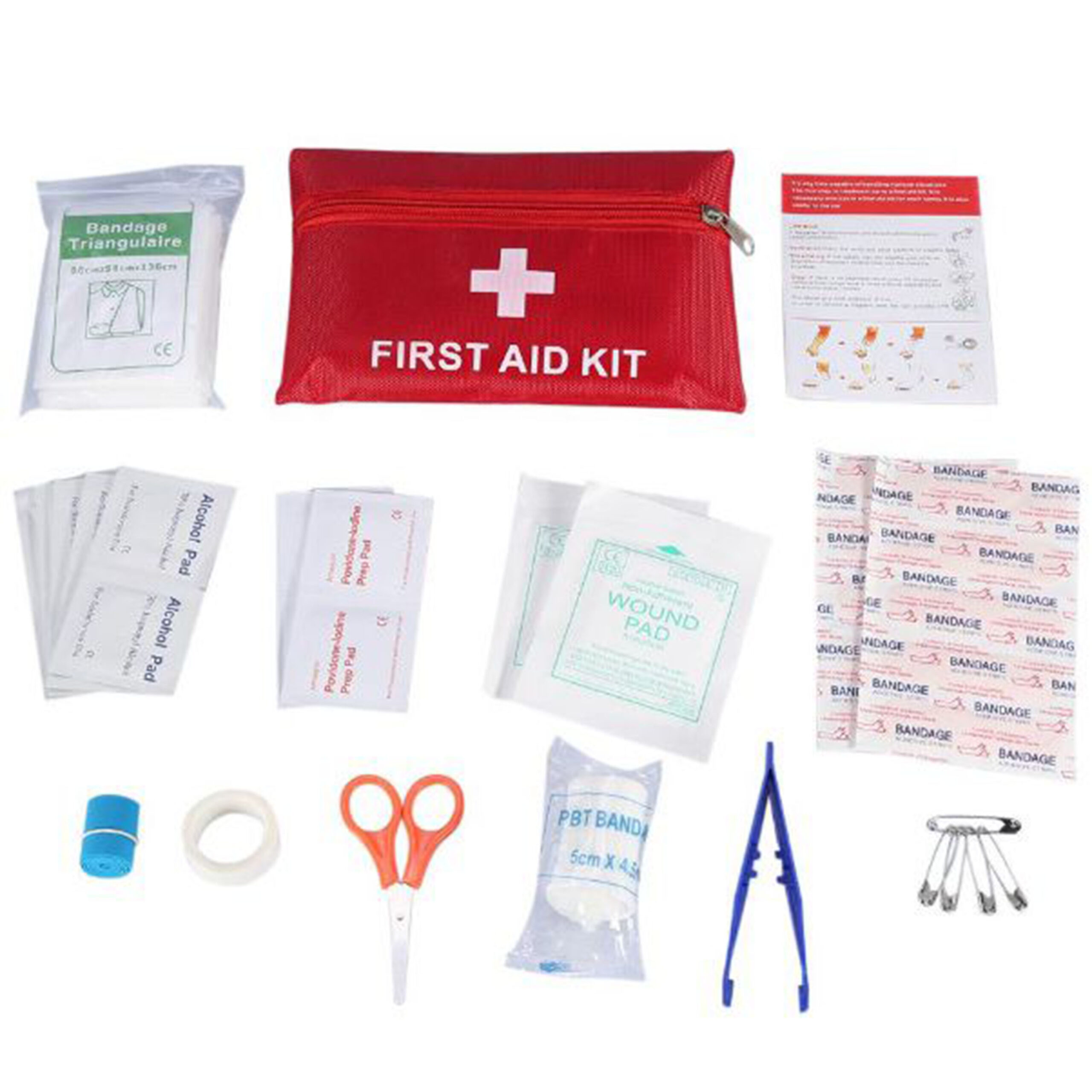 The first aid kit you should have in your car. This first aid kit contains 1pc bag and 12 kinds of emergency tools that is suitable for home, outdoor sports or travelling. Equipped with bandage, tweezers, swabs, alcohol pad and so on, very convenient to use.